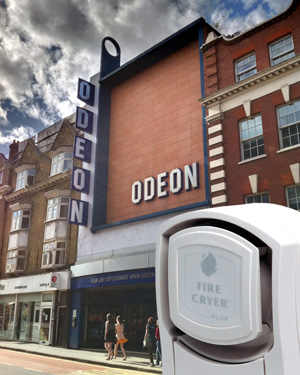 ODEON Cinema, CamdenFire-Cryer® multi-message voice sounders ensure cinema goers are not confused by conventional alarms during evacuation.The ODEON cinema in Camden, London has upgraded to Vimpex’s Fire-Cryer® Plus 7-message voice sounders to ensure fast and safe evacuation of staff and the public in the event of a fire. The combination of the common alarm tone with clear and unambiguous voice messages ensures that there is no confusion when building evacuation is required. The Fire-Cryer® was specified by Peter Ford, ODEON UK’s Risk Management Director, following its use in many other ODEON cinemas across the UK in recent years. The upgrade was designed and installed by PFS Group Ltd, who has also worked on many of the other ODEON projects.